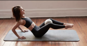 Most classes only require you to have a mat to practice on, but if you want to level up your pilates practice you can purchase her stability ball as well as 1-2 lb wrist / ankle weights. Lia loves Bala Bangles.